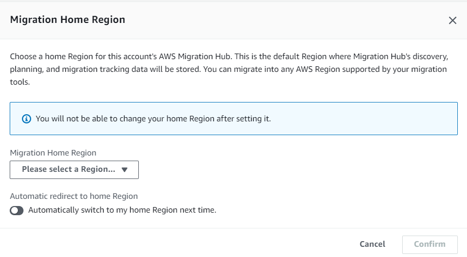The Migration Hub data is stored in the home Region for purposes of discovery, planning, and migration tracking.