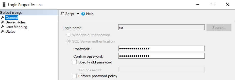 On Security 🡪 Logins 🡪 Activate sa User by Double Click and Set Password for sa User and on Status make sure Login is enabled then Click Ok.