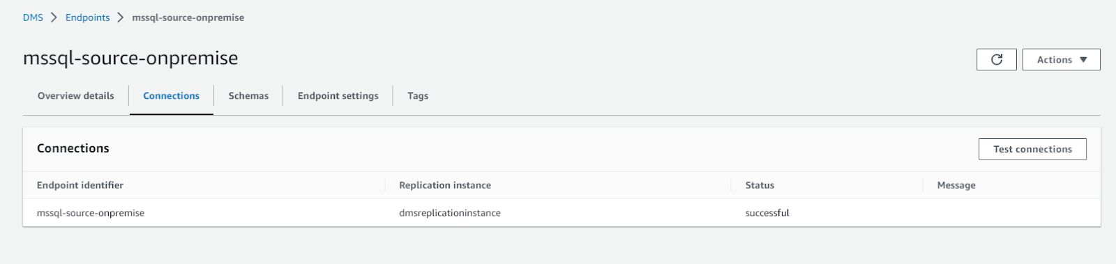 After Source Endpoint is created we can also check if the connection was successful or not.