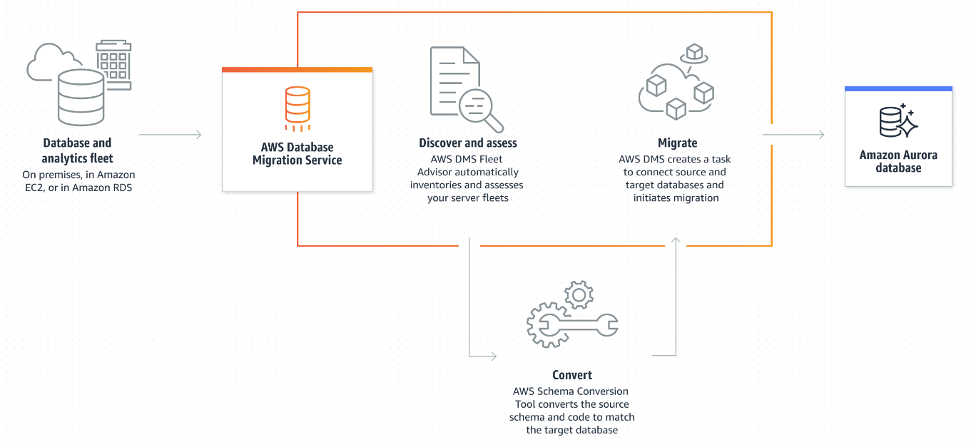 AWS DMS helps migrate databases to AWS quickly and securely with minimal downtime, supporting both homogenous migrations, such as Oracle to Oracle, and heterogeneous migrations between different database engines, such as Microsoft SQL Server to Amazon Aurora.