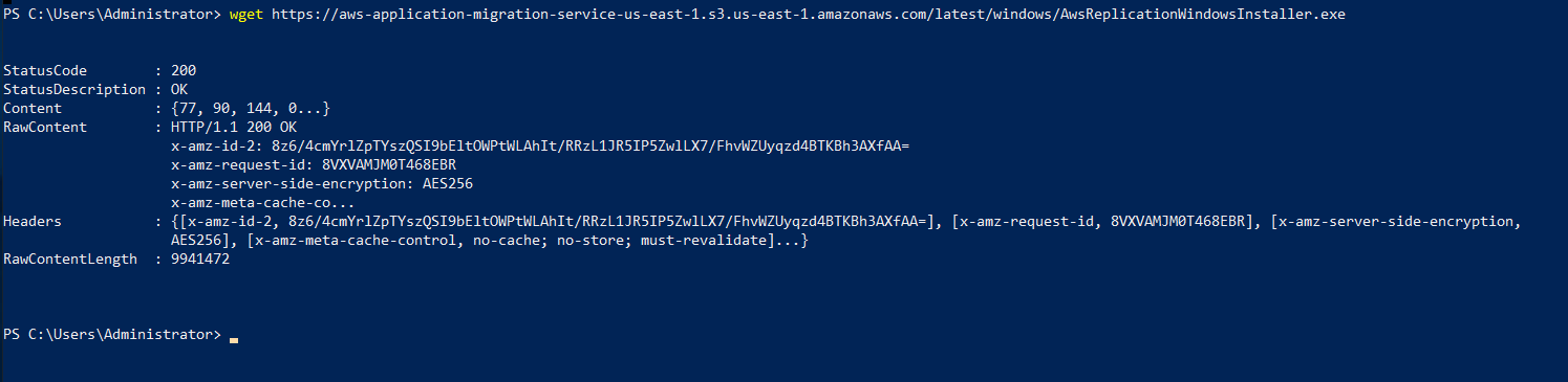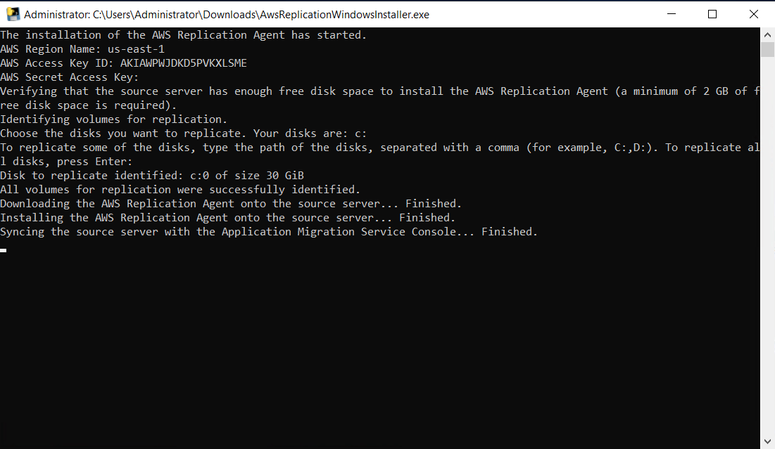 After all of the disks that will be replicated have been successfully identified, the installer will download and install the AWS Replication Agent on the source server.
