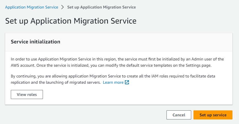In the “Set up Application Migration Service”, we can see “View Roles” and create an IAM User using proper Policy.