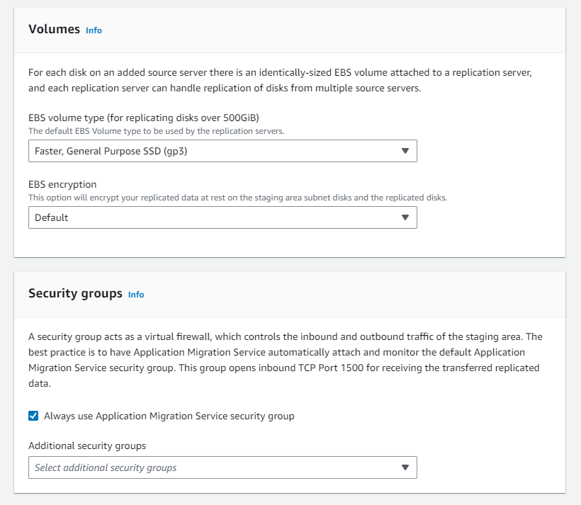 We can select Staging Area Subnet and Server Instance Type and Volume